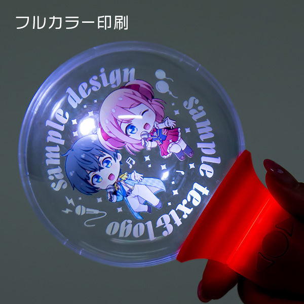 2種類から選べる透明なドームに、オリジナル印刷可能なアクリル板を入れた、会場をキラキラ輝かせるペンライトです。