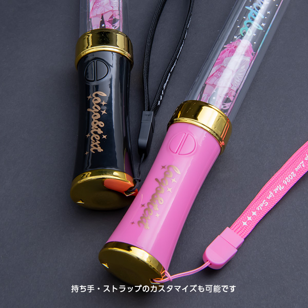 当社人気No.1のアクリルペンライトのオリジナル制作。2種類のハンドルカラーと発光タイプを選べます。