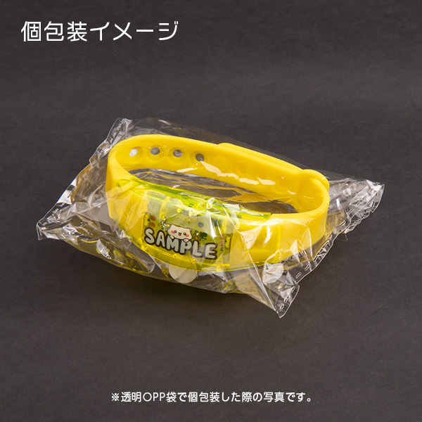 ワンタッチで簡単に装着が可能な光るブレスレットです。透明バンドと電池ボックスにオリジナル印刷・加工ができます。