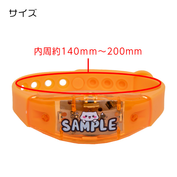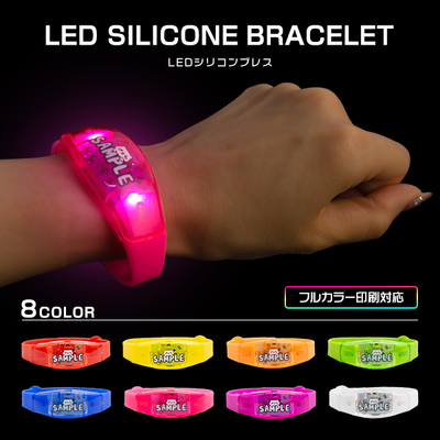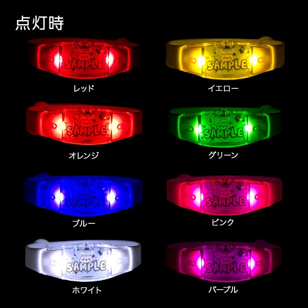 周囲の音に反応して光るLEDブレスレットにオリジナル印刷をいたします。本体カラーは9色からお選び頂けます。