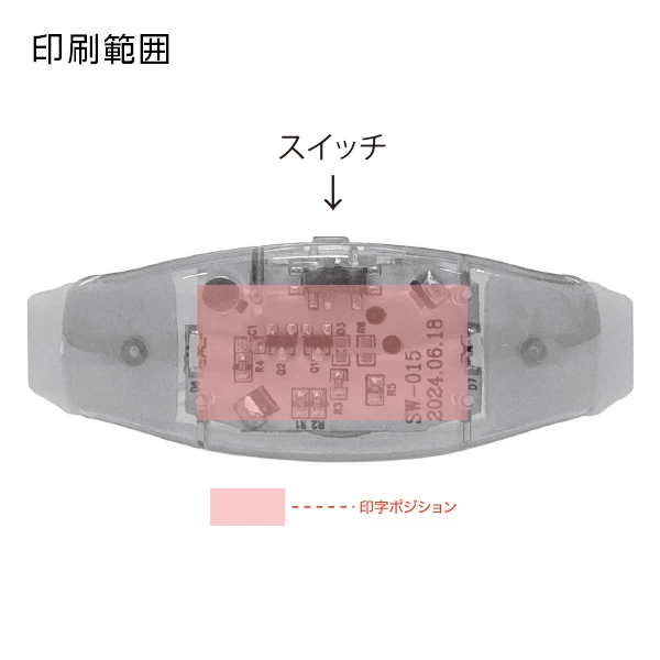 | 詳細 | オリジナル印刷ができる光るLEDブレスレット(光るリストバンド)を制作いたします。イベントやライブグッズのアクセサリーとして人気の光るブレスレット!シリコンバンドを含む本体カラーは8色から選択可能で、前面プラスチック部にワンポイントの印字が可能です。オリジナルグッズ・ノベルティ制作におすすめです。 |