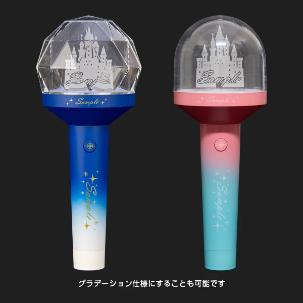 2種類から選べる透明なドームに、オリジナル印刷可能なアクリル板を入れた、会場をキラキラ輝かせるペンライトです。
