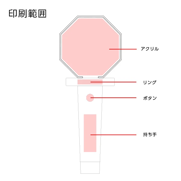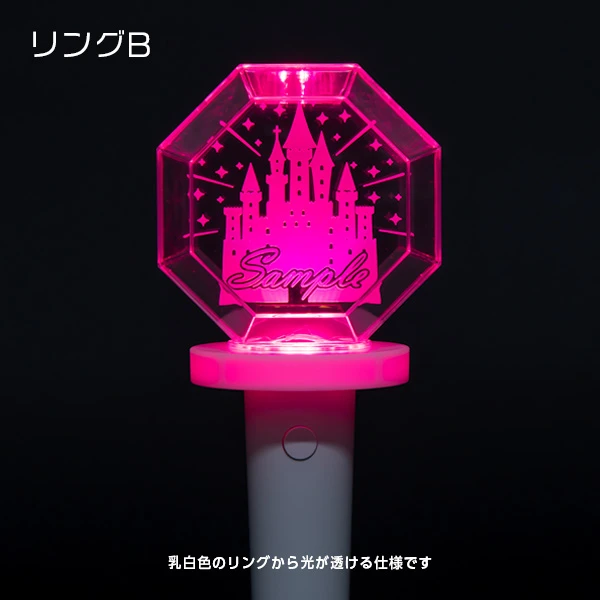 | 詳細 | ライブやコンサートでの物販グッズ・応援グッズとしておすすめのドーム型ペンライトです。 透明な八角形の発光部にはアクリル板が入っており、オリジナル印刷が可能です。 製作ロットは300個から対応します。是非一度ご相談くださいませ。 |