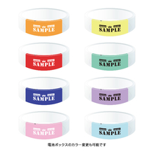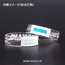 単色LEDタイプの光るブレスレットにオリジナル印刷をいたします。7種類のカラーバリエーションとサイズ調整バンド付き。